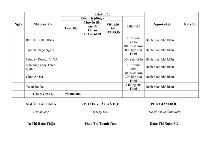 TỔNG HỢP CÔNG TÁC VẬN ĐỘNG HỖ TRỢ NGƯỜI BỆNH CÓ HOÀN CẢNH KHÓ KHĂN THÁNG 10/2025