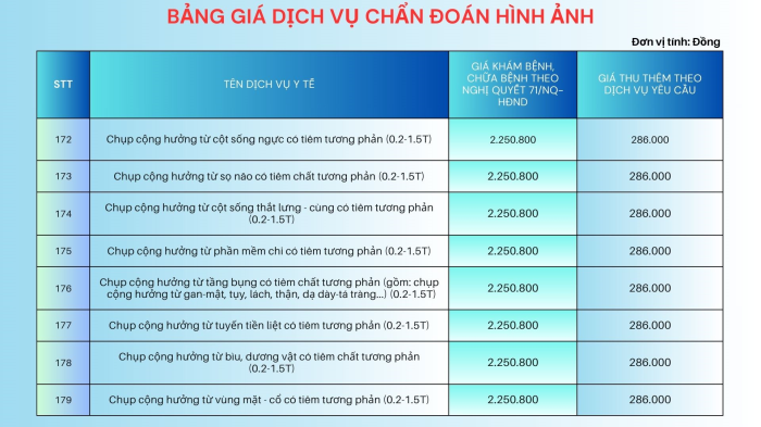 BẢNG GIÁ DỊCH VỤ CHẨN ĐOÁN HÌNH ẢNH
