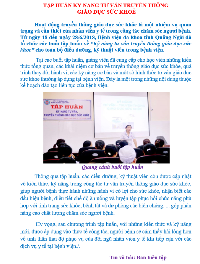 Tập huấn kỹ năng tư vấn truyền thông giáo dục sức khỏe