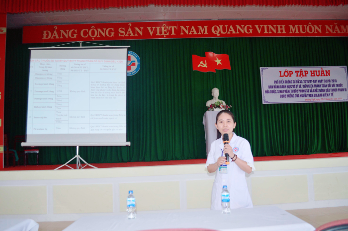 Thạc sĩ Dược sĩ Trần Thị Minh Tâm đang truyền đạt nội dung tại buổi tập huấn